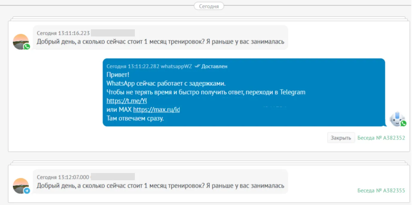 Но на фоне изменений в работе WhatsApp мы столкнулись с падением доходимости сообщений и риском потери части коммуникации с клиентами.