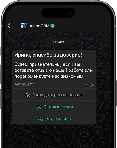 Проблема: Менеджеры забывают запрашивать обратную связь. А без неё непонятно, что работает, а что — нет. Решение: После закрытия сделки (успех или отказ) CRM запускает сценарий: отправка короткой формы или вопроса в WhatsApp/email.