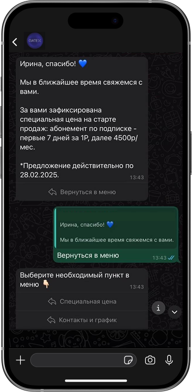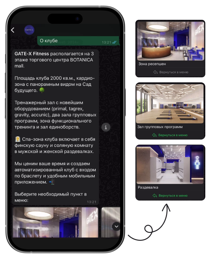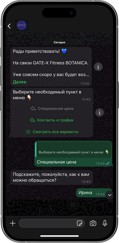 Поэтому, совместно с командой Gate-X Fitness были разработаны и запущены чат‑боты в популярных мессенджерах. Они выполняли несколько функций: