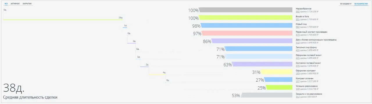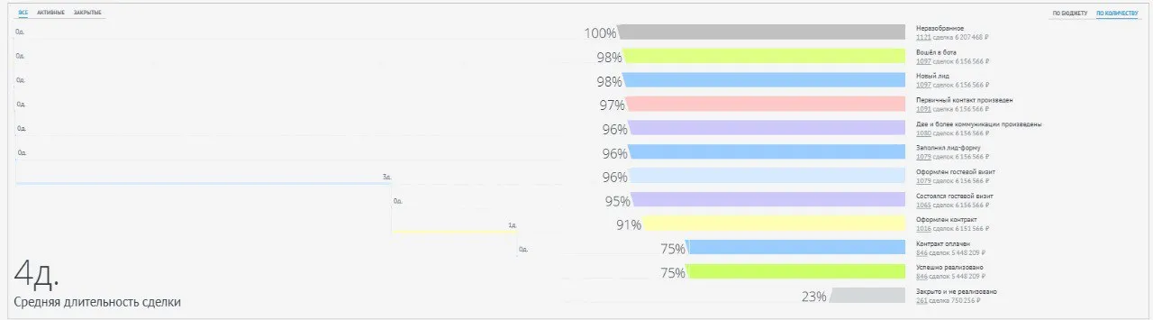 "Максимальная автоматизация продаж, чтобы на каждом этапе был отработан каждый потенциальный клиент без потерь. Минимум ручной работы."