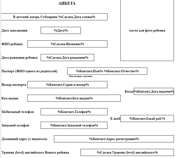 Анкета для заполнения