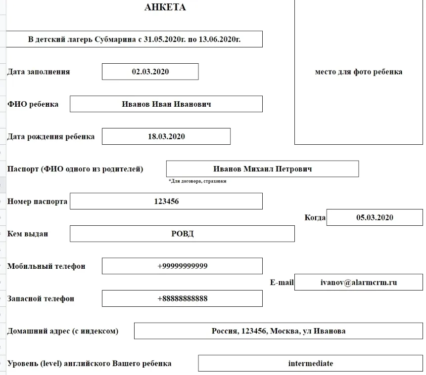 На сбор первичной информации о ребенке уходило много времени. Менеджеры использовали google-документ, который отправляли на заполнение родителям.
