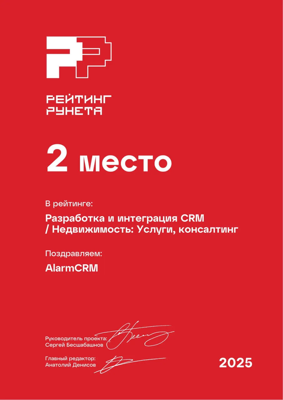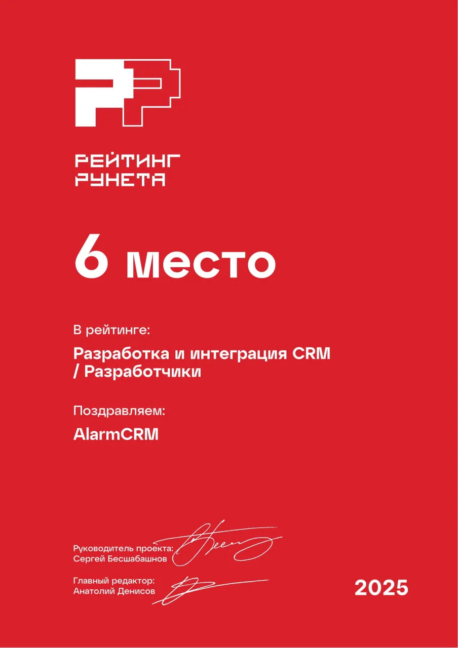 3 июня опубликовали результаты Рейтинга Рунета 2025. В этот раз — 6 место в основном рейтинге «Разработчики CRM» и десятки подкатегорий, где мы уверенно заняли высокие позиции рядом с лидерами рынка.